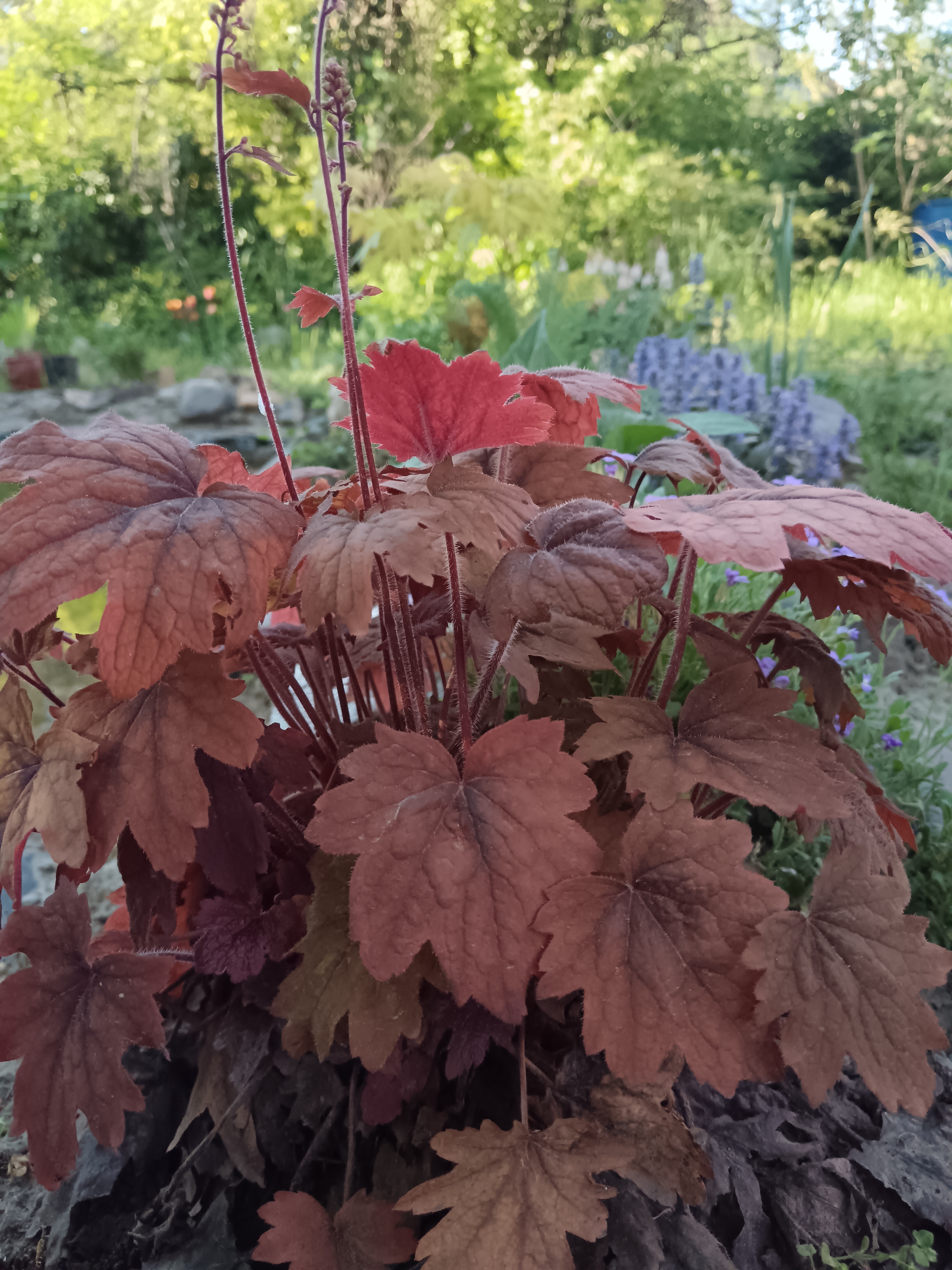 A tűzgyöngyvirágok egyik legszínesebb évelőcsoportunk, virágzási időszakon kívül is sok örömet okoz nekünk változatos lombozatával. Rengeteg árnyalatban pompáznak: a rózsaszíntől a vörösön át az élénk piroson túl az egészen sötét liláig. Ezeken a színeken kívül természetesen találkozhatunk a zöld minden árnyalatával. Egyes fajták levelei fodrosabbak, szöszösebbek, mások egyszerűbbek. Valamint az erezete is színezett a fajták nagy részénél.