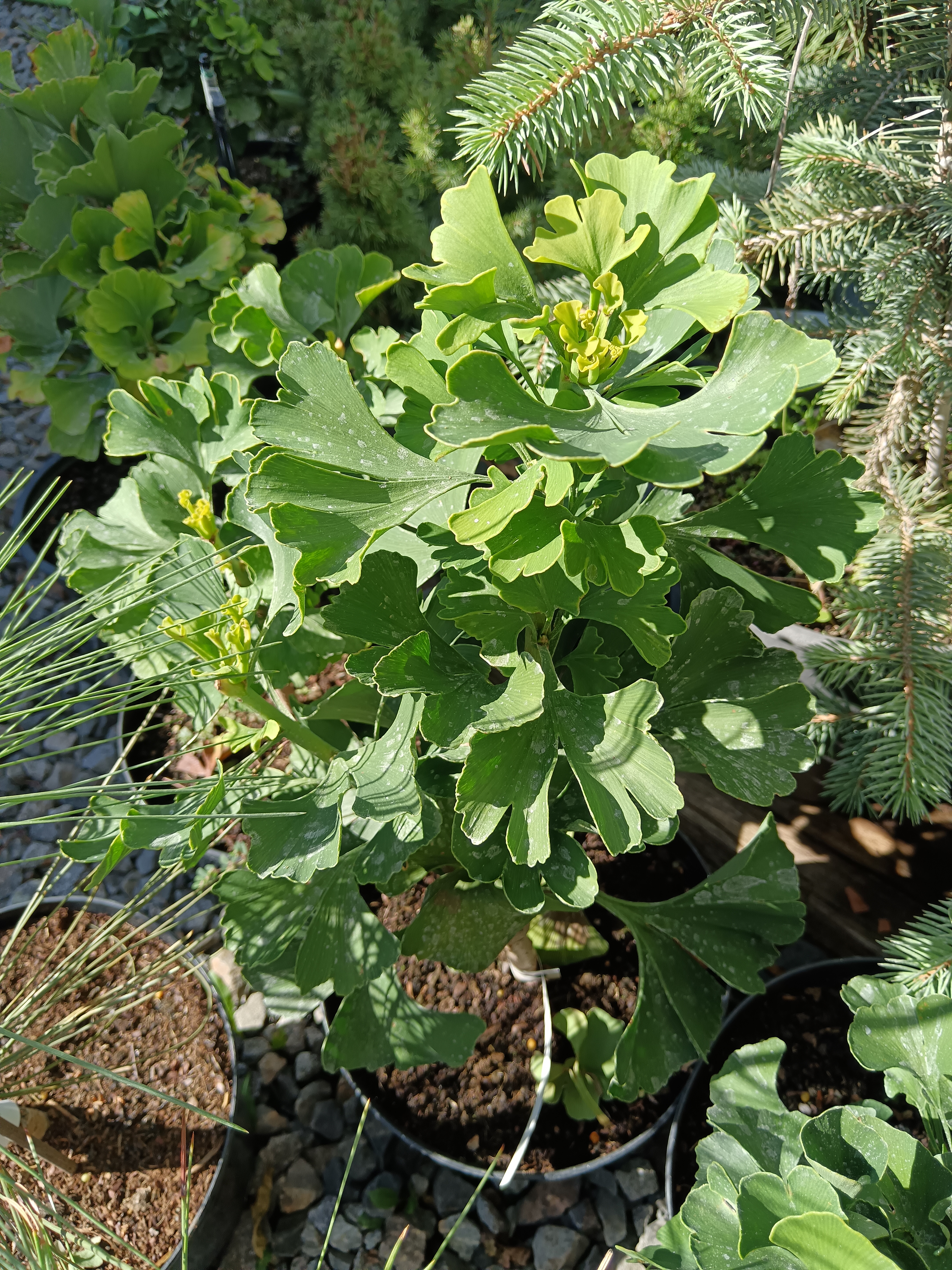 (Ginkgo biloba) 200 millió éves ősi fenyőféle, azonban megjelenését tekintve lomblevelei vannak, amelyeket tavasszal hajt, ősszel pedig lehullajt. Vezérhajtása felfelé törő, oldalágai fiatalon ritkán, később besűrűsödve alkotják a koronáját. Jellegzetes levelei ősszel egyöntetűen sárgára színesednek. Jó várostűrő. Közepes vízigényű, napos helyre ültessük.