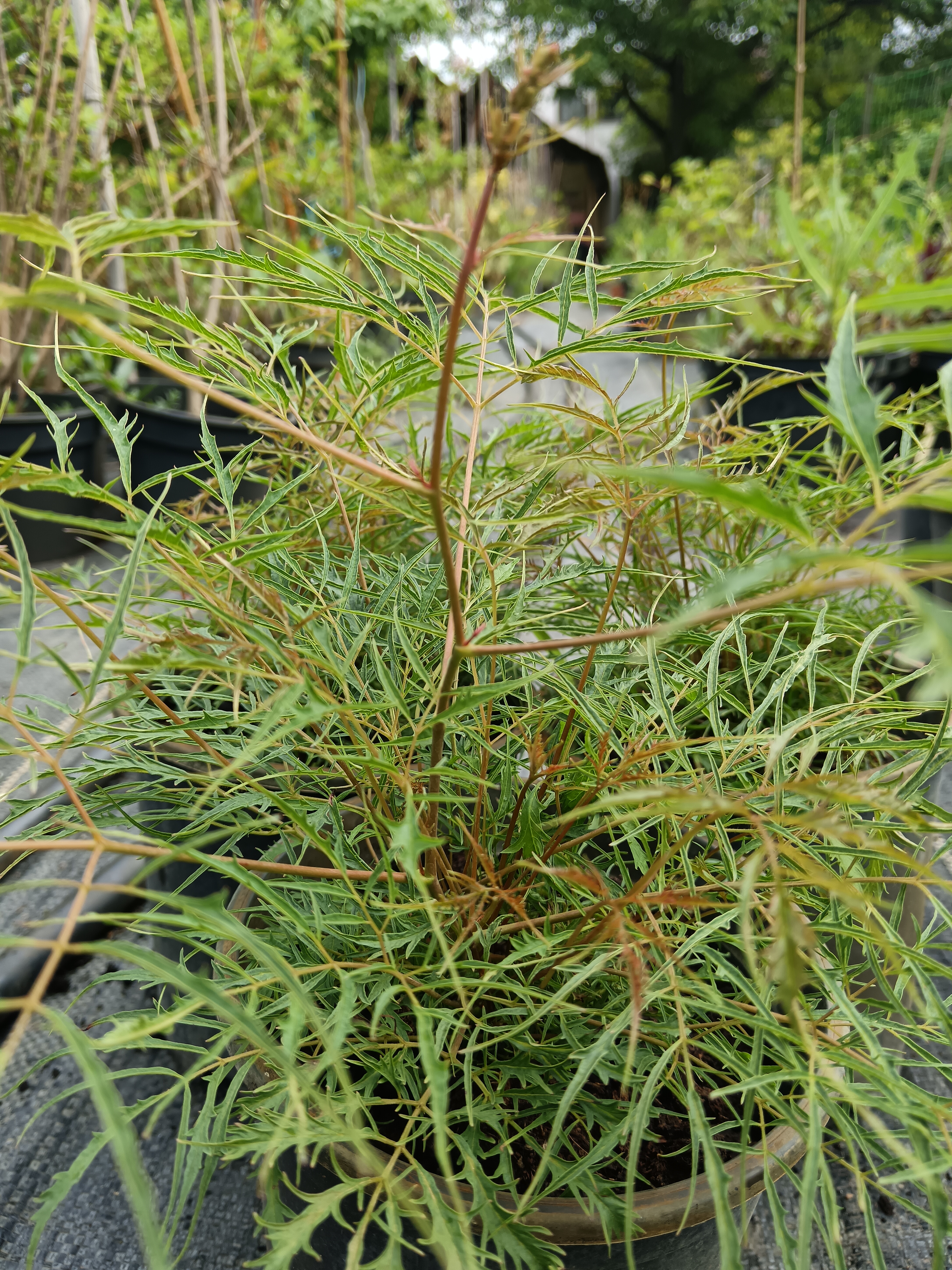 60 cm magas, fodros levelű gólyaorr, bordó virágai májustól nyílnak. Félárnyékos helyet szeret.