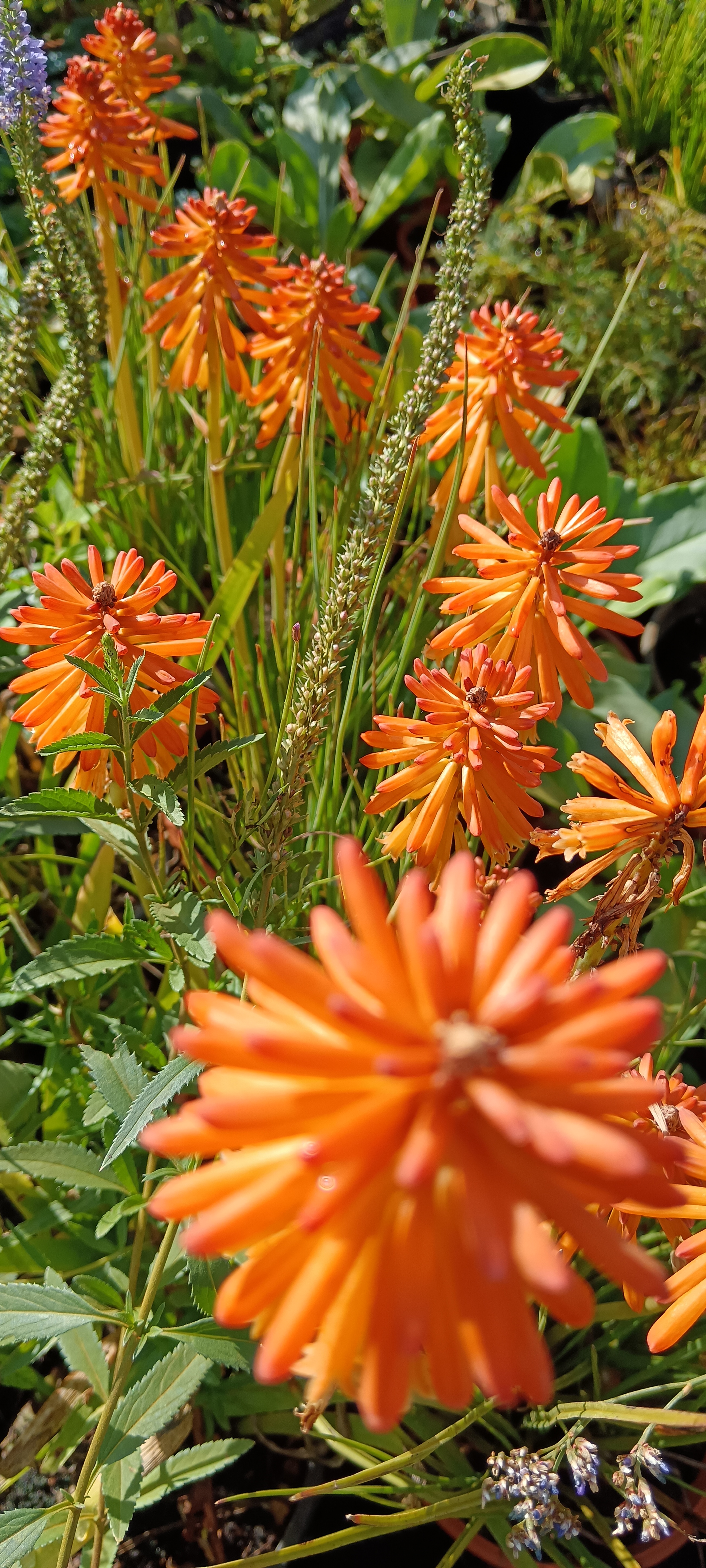 80-100 cm magas, tőlevélrózsás, hosszú levelű évelő. Fáklyához hasonló, 25-30 cm-es virágai tömött fürtben nyár elején nyílnak. Bimbói korallpirosak, kinyílt virágai sárgák. Napos helyet kíván. Szoliterként vagy csoportosan évelőágyba ültessük. Ültetés után érzékeny a pangó vízre.