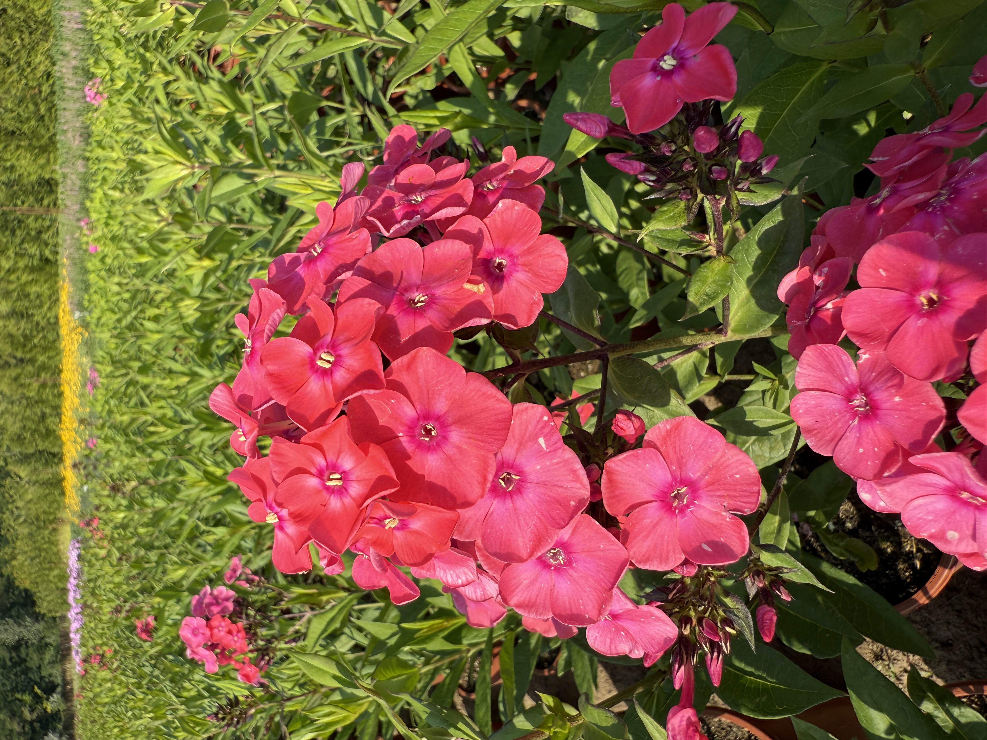 (Phlox paniculata Pink Flame) 60-70 cm magas lángvirág, rózsaszín virágai júliustól nyílnak. Napos helyre ültessük, átlagos vízigényű.