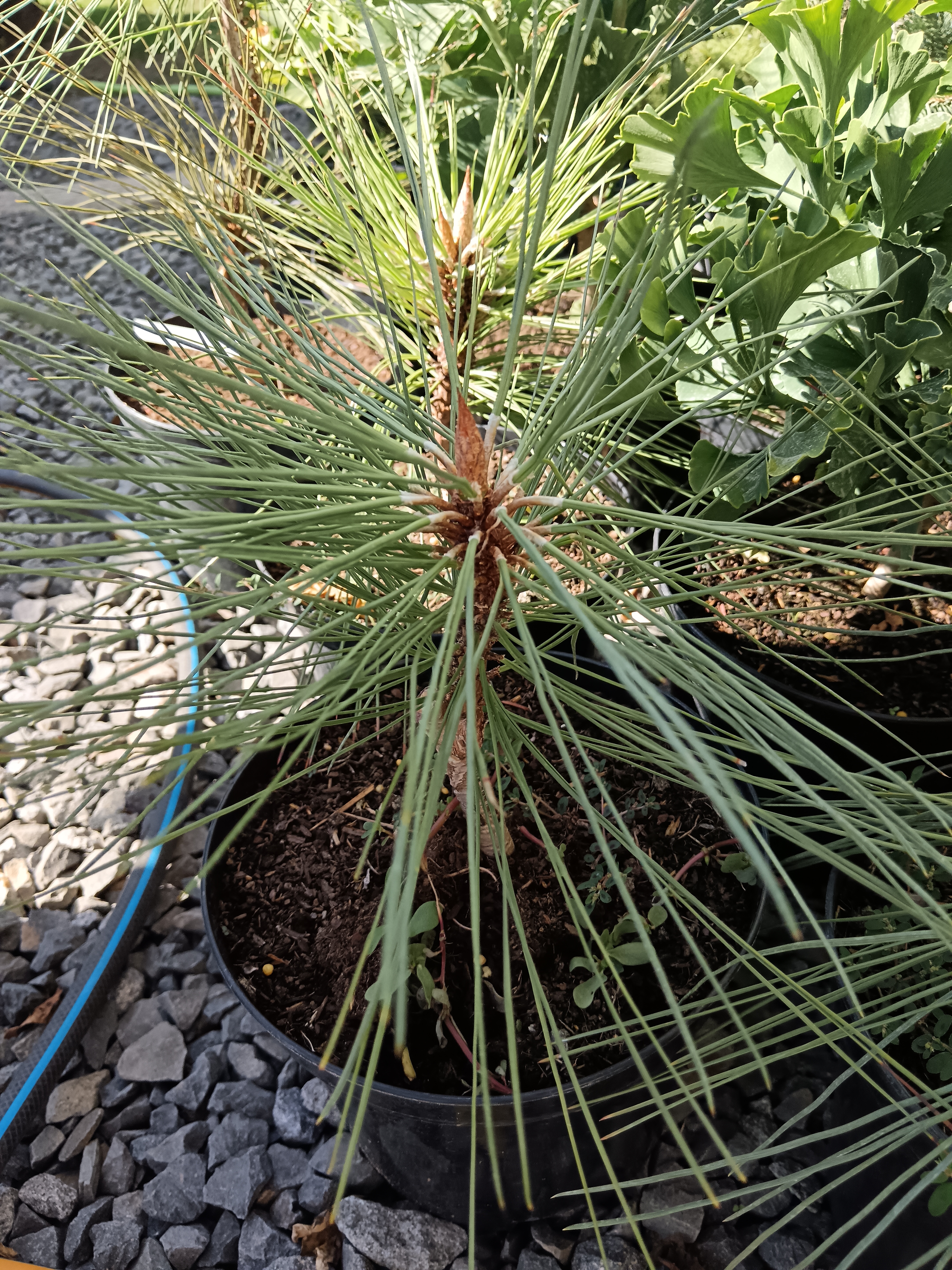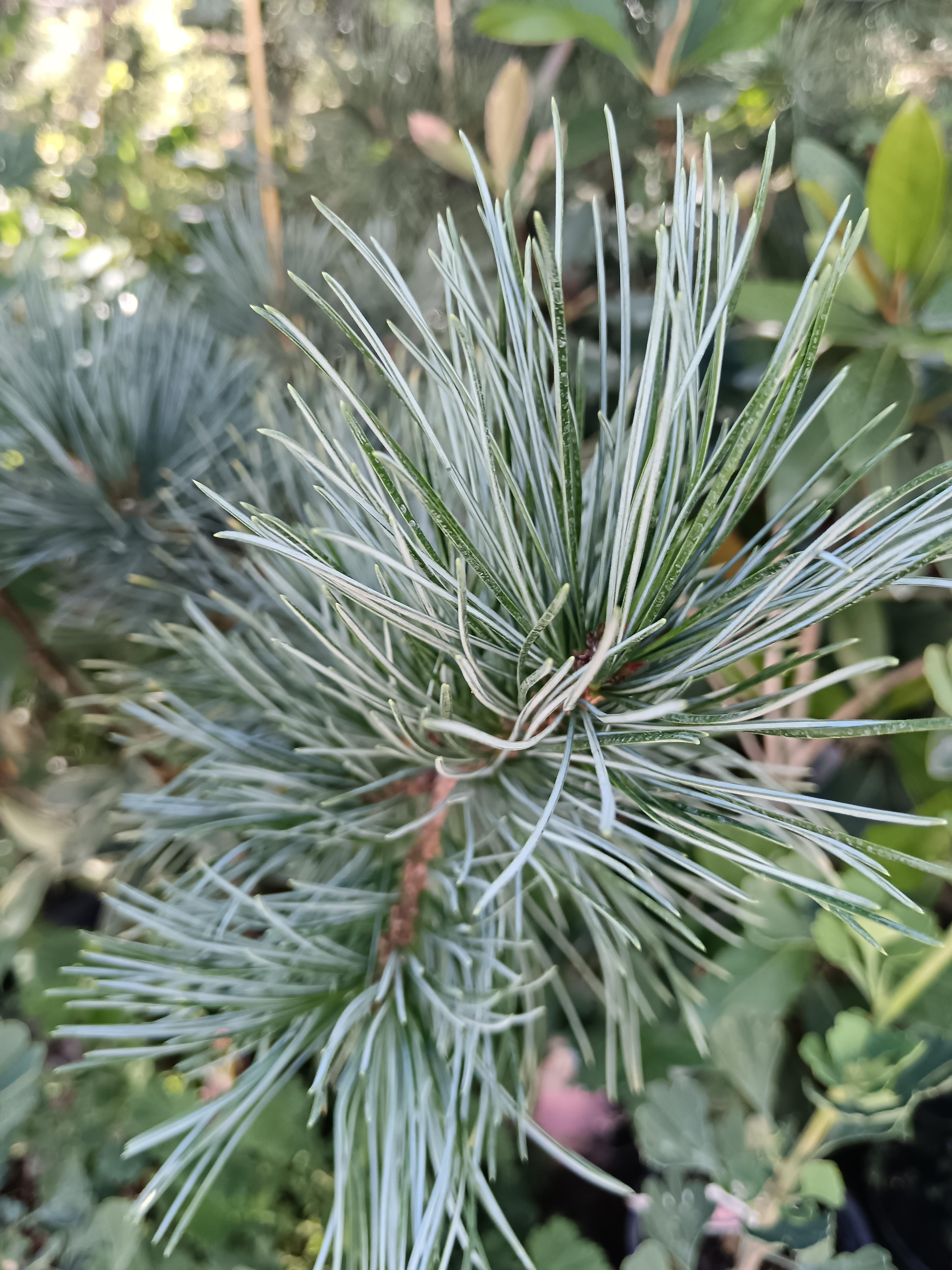 (Pinus flexilis Extra Blue) 4-5 méterre növő, hosszú, ezüstkék tűlevelű örökzöld cirbolyafenyő.