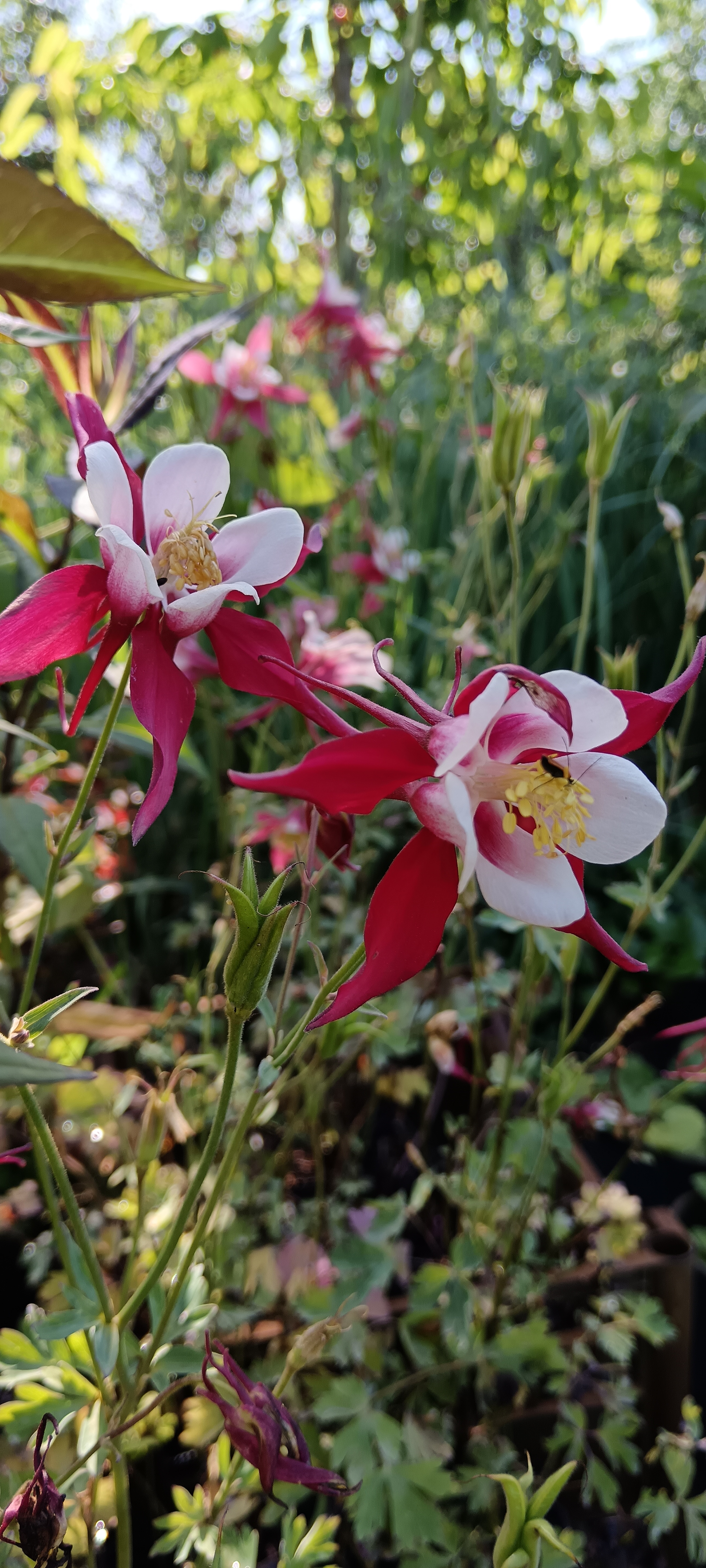 (Aquilegia Crimson Star) 50-60 cm magas harangláb, piros-fehér virágait nyár elején bontja. Napos, félárnyékos helyen fejlődik szépen, átlagos vízigényű.
