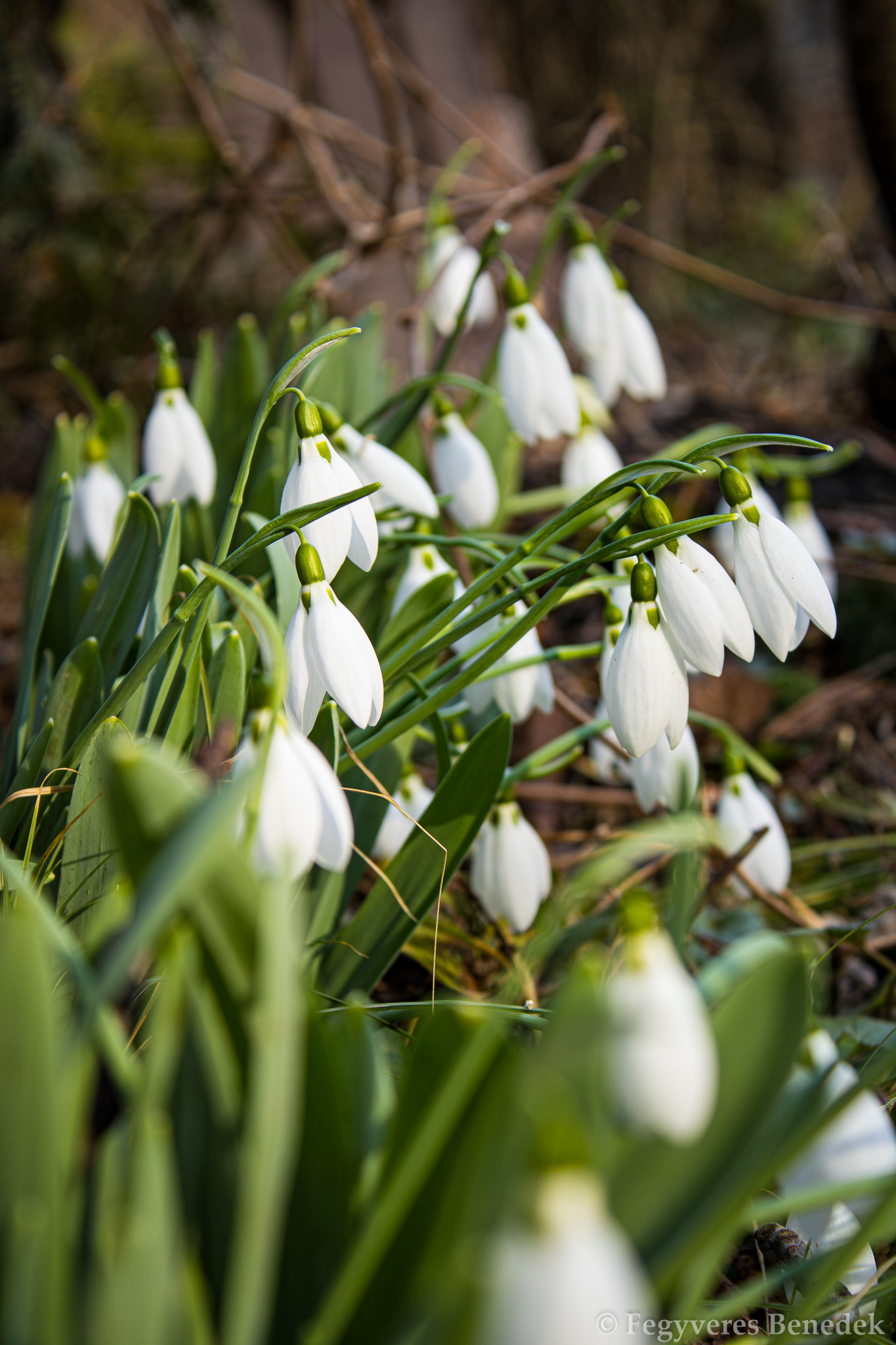 (Galanthus elwesii) 10 cm magas, február végétől virágzó évelő.