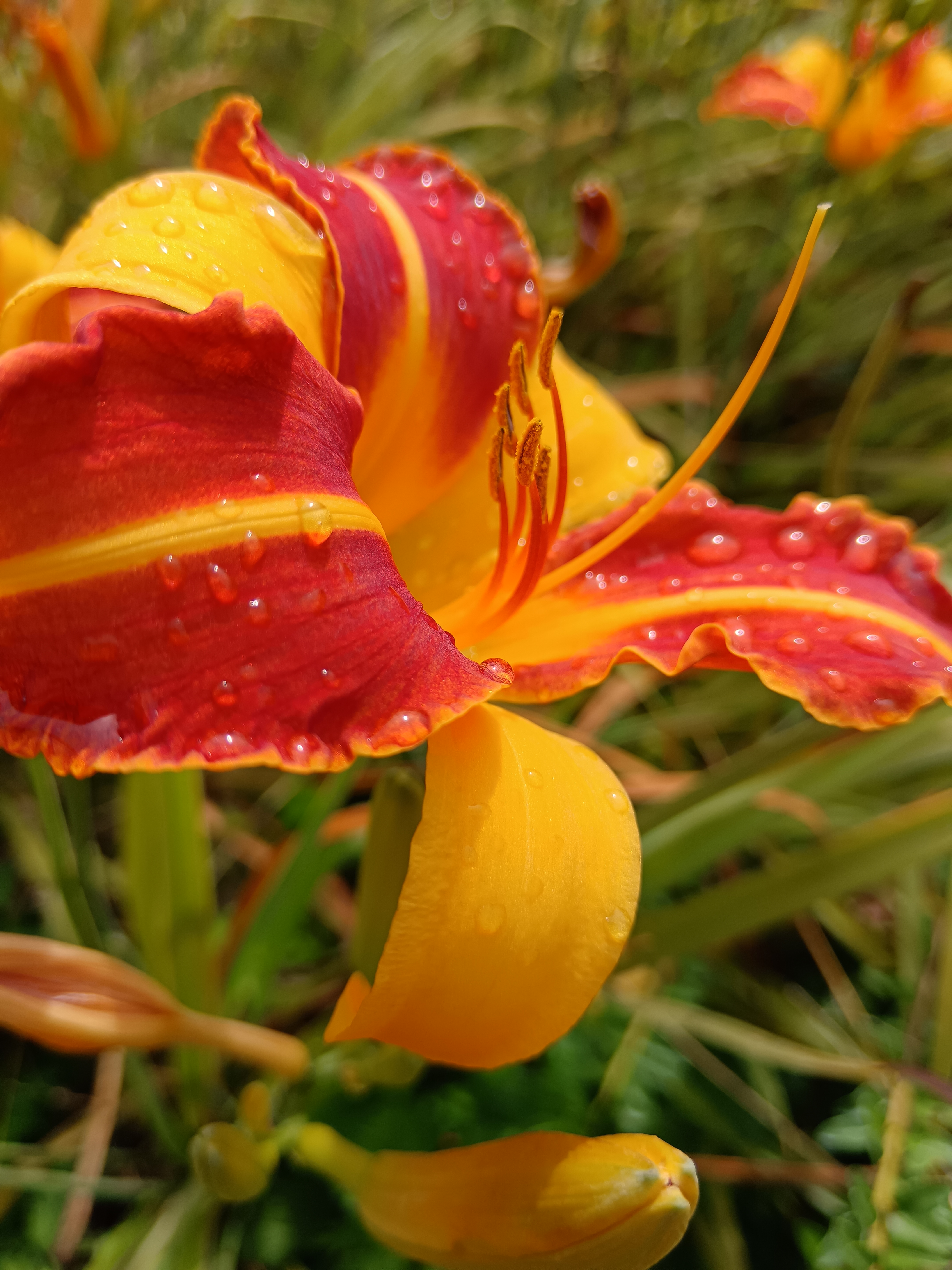 (Hemerocallis Frans Hals) 100-120 cm magas növény.Különleges virágai három sárga és három bordó színű sziromból állnak. A bordó szirmok közepét sárga középér is tarkítja. Különleges látványosság lehet kerti tó partján, facsoportok félárnyékos oldalán, évelőágyásokban. Örökzöldek előtt különösen szép látványt nyújt.