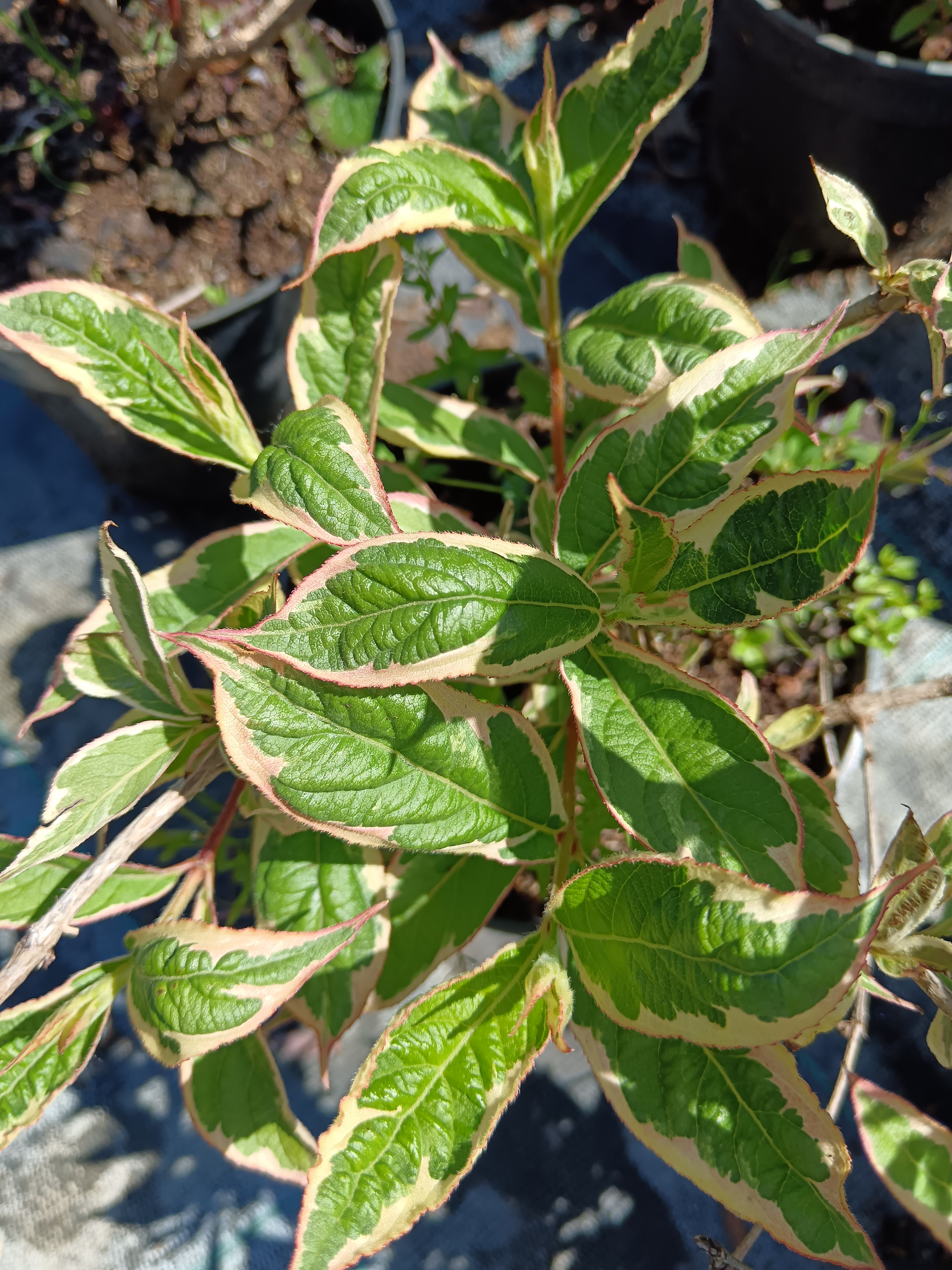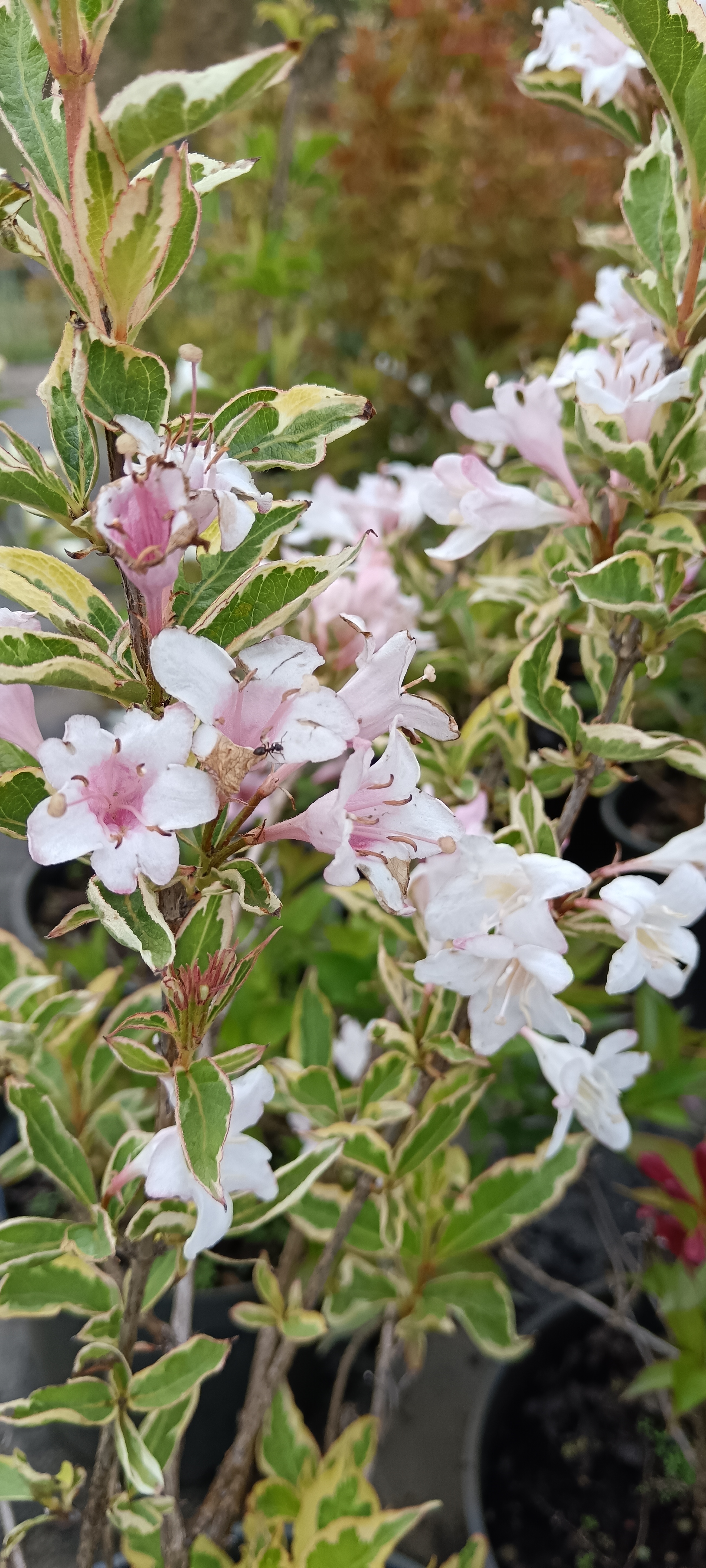(Weigela florida Variegata) 2-3 méter magasra megnövő, szabálytalan alakú díszcserje. Levelei és virágai is díszítő értékűek. Zöld levelei fehér szélűek. Rózsaszín, tölcséres virágait május-júniusban bontja. Napos és félárnyékos helyen is szépen fejlődik.