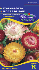 (Helichyisum bracteatum) A legismertebb szalmavirág. Meleget és közepesen nedves talajt kíván. Május közepén vessük szabad földbe. Szárítás céljából akkor vágjuk, mikor a zárt bimbó szélső pikkelylevelei kezdenek elválni. Kinyílt állapotban vágva szárításkor tovább fejlődik és közepe üres lesz. 80-100 cm magas.