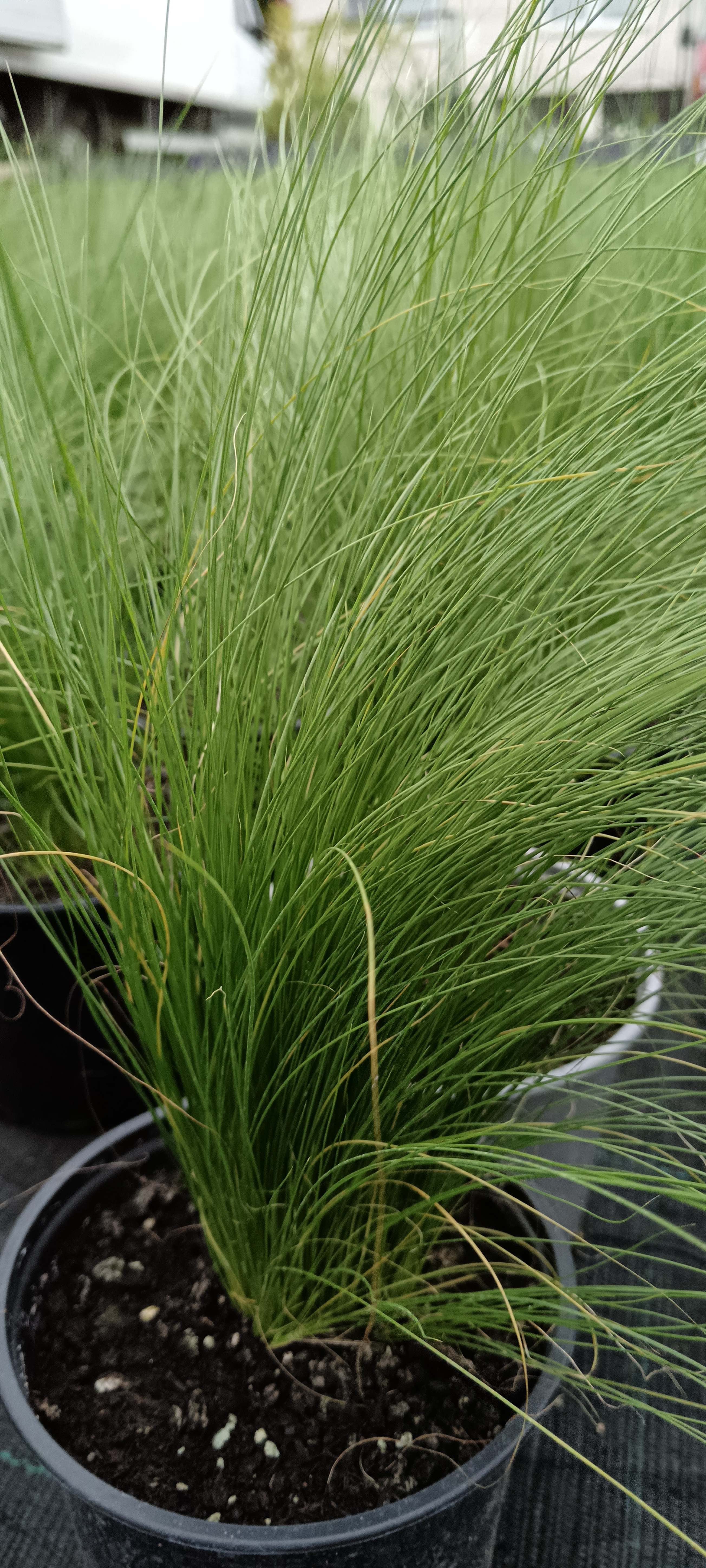 (Stipa tenuissima) Napsütést kedvelő, korán virágzó fűféle, szárazságtűrő. 40-80 cm magas, enyhén bókoló lombú, örökzöld. Levelei keskenyek, sötétzöldek. Érdemes szeles helyre telepíteni, ott érvényesül igazán hullámzó virágzata.