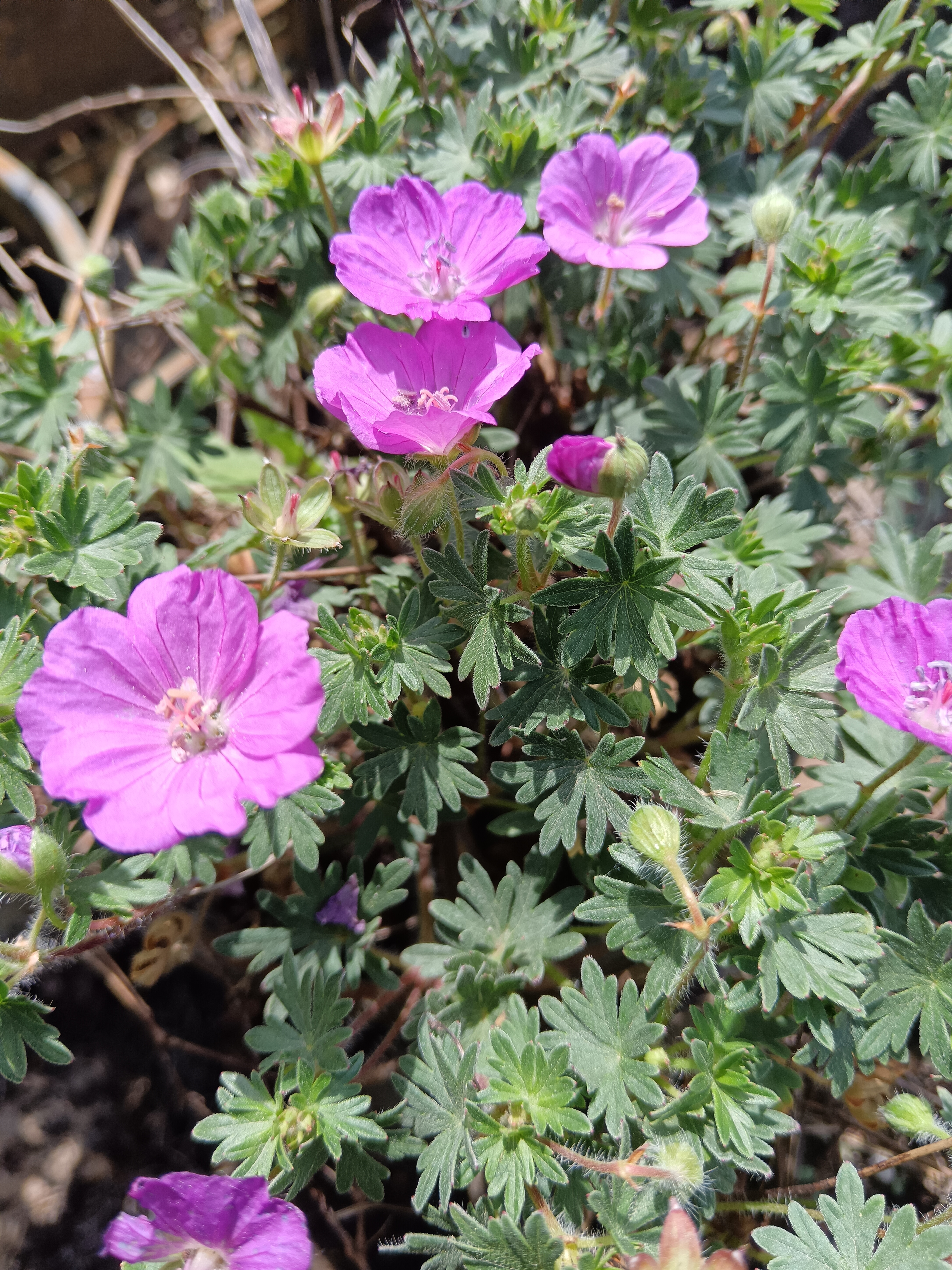 (Geranium sanguineum Max Frei) 20-25 cm magas, talajtakaró évelő. Piros virágait májustól a fagyokig bontja. Sziklakertekbe, évelőágyásokba való dísznövény. Visszavágással könnyen megújítható. Ősszel lombja pirosra színeződik. Napos helyet kedvel, az öntözést meghálálja.