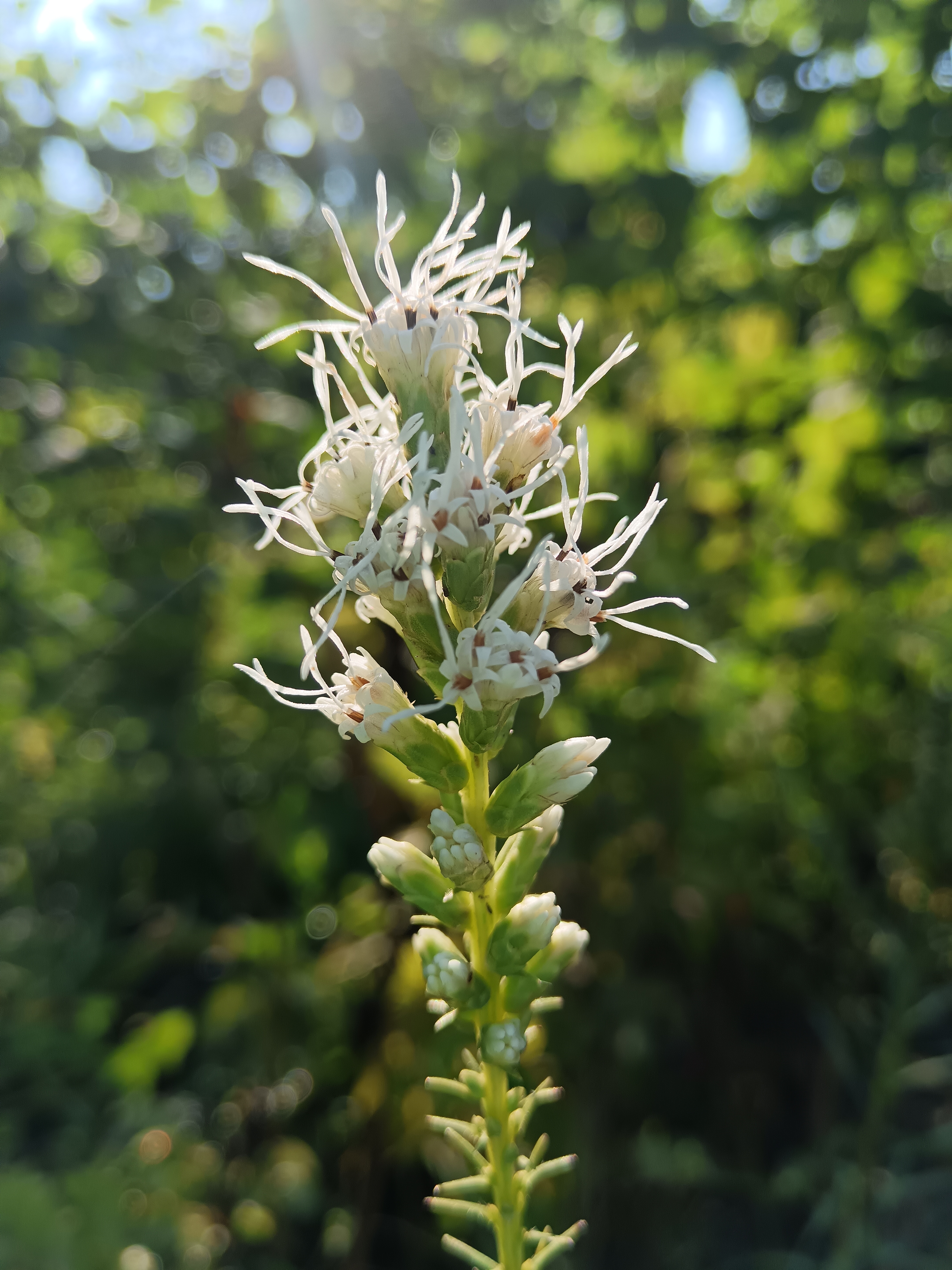 (Liatris spicata Floristan Weiss) 40-50 cm magasra növő, gyöktörzses, felálló szárú évelő. Virágait tömött füzérekben hozza, amelyekben a virágok felülről lefelé nyílnak. Egzotikus megjelenésű. évelőágyakban, fák-cserjék előterében kisebb csoportokba ültetve különleges látványt nyújt. Napos, félárnyékos helyre ültessük, rendszeres öntözést igényel.