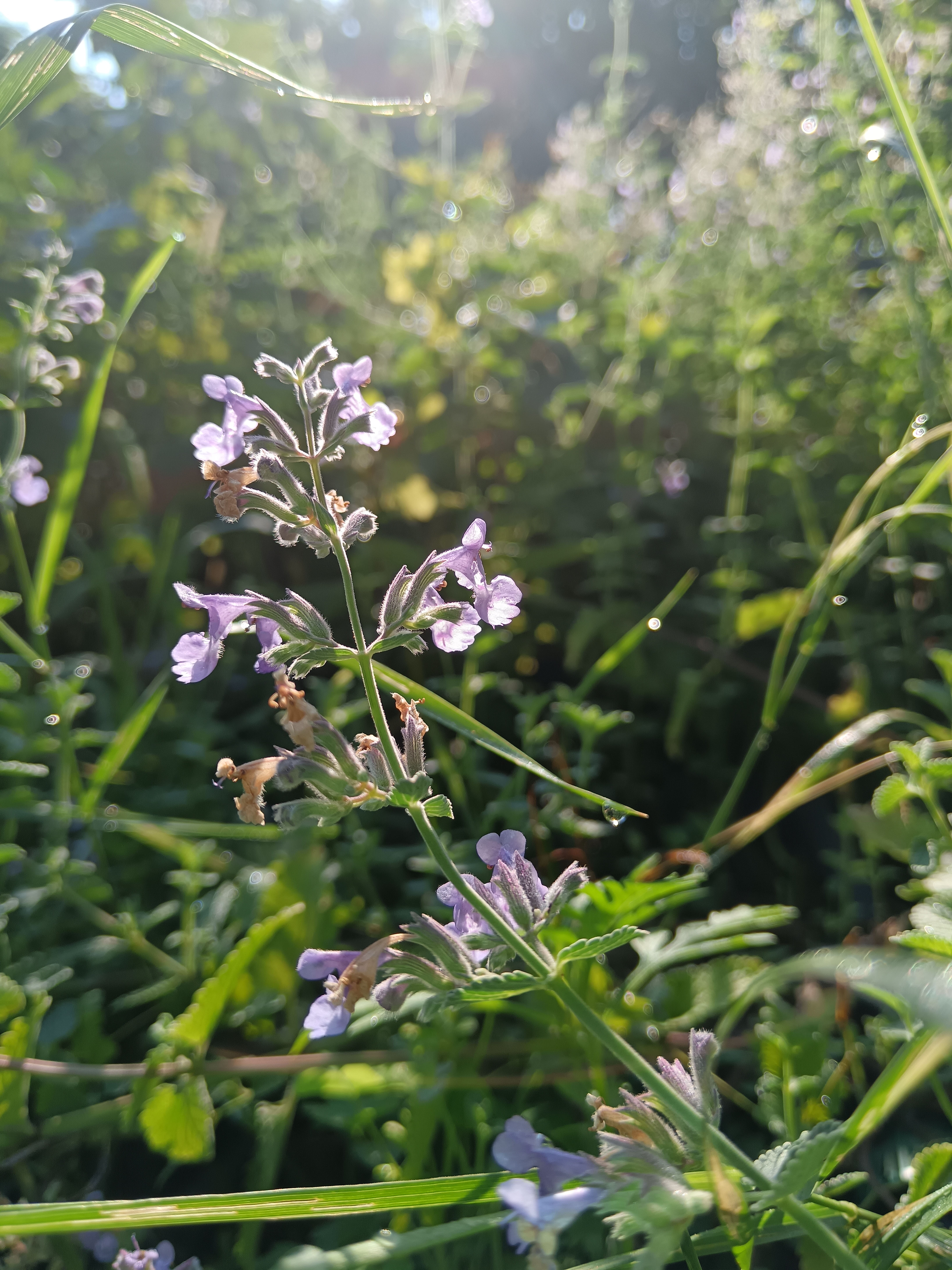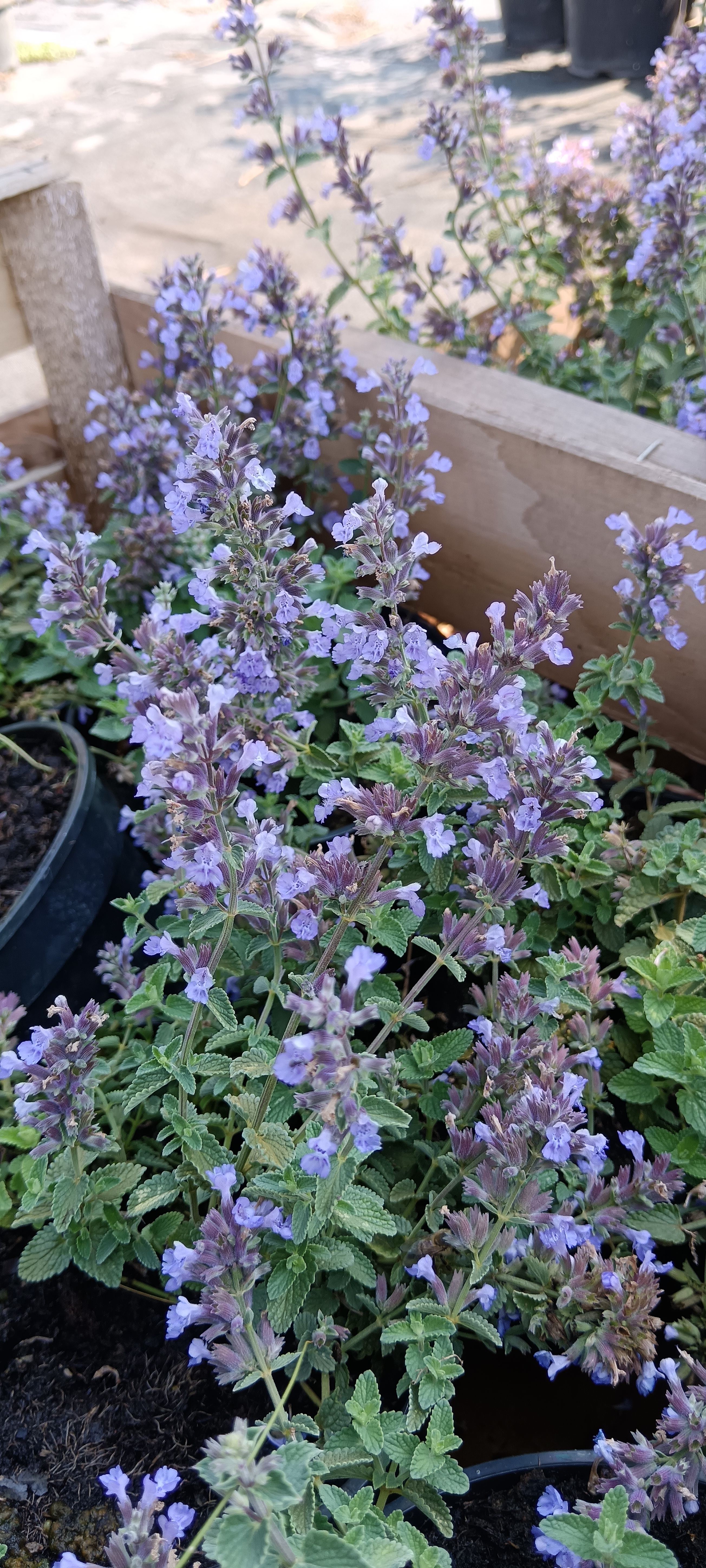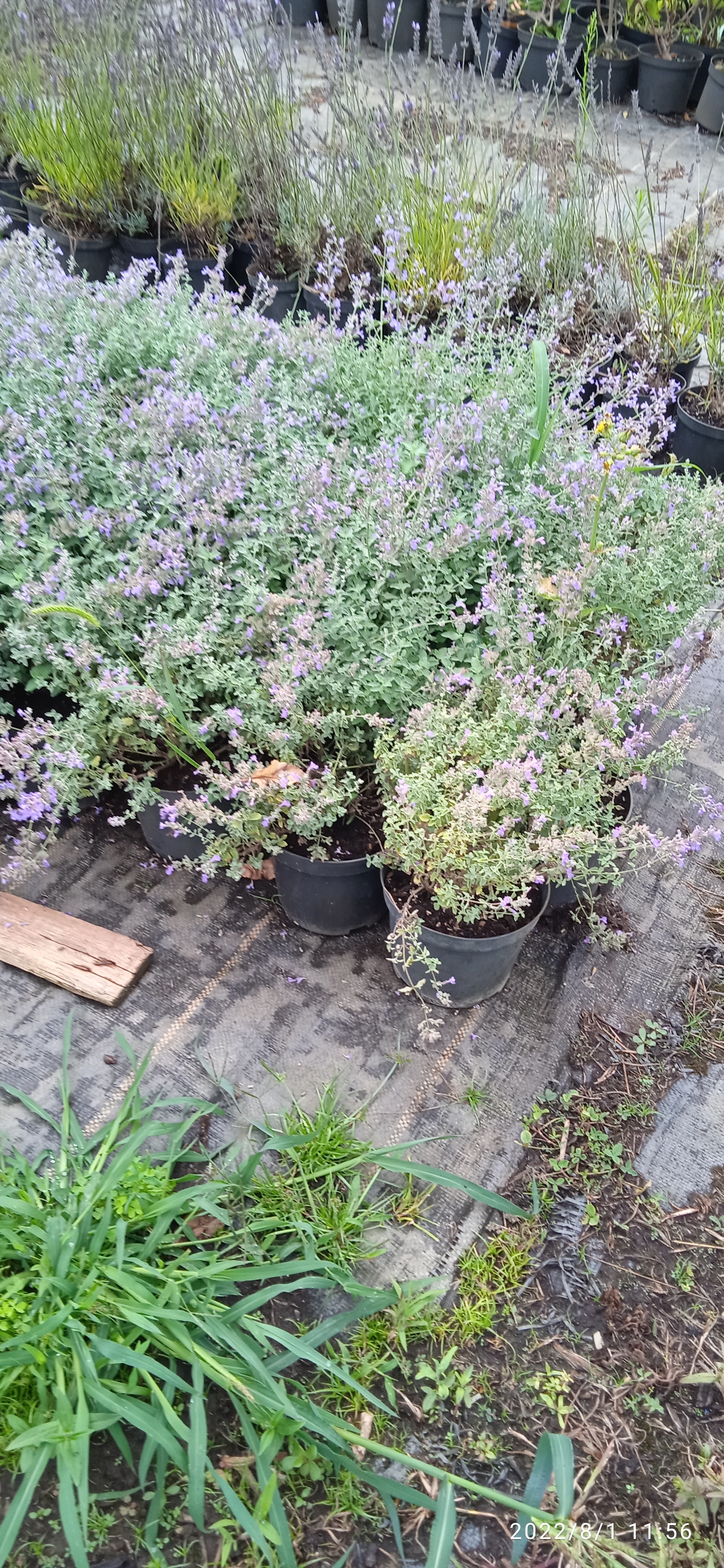 (Nepeta racemosa Little Titch) 20-30 cm magas, aromás levelű macskamenta, levendulakék virágai májustól nyílnak. Napos helyet szeret.