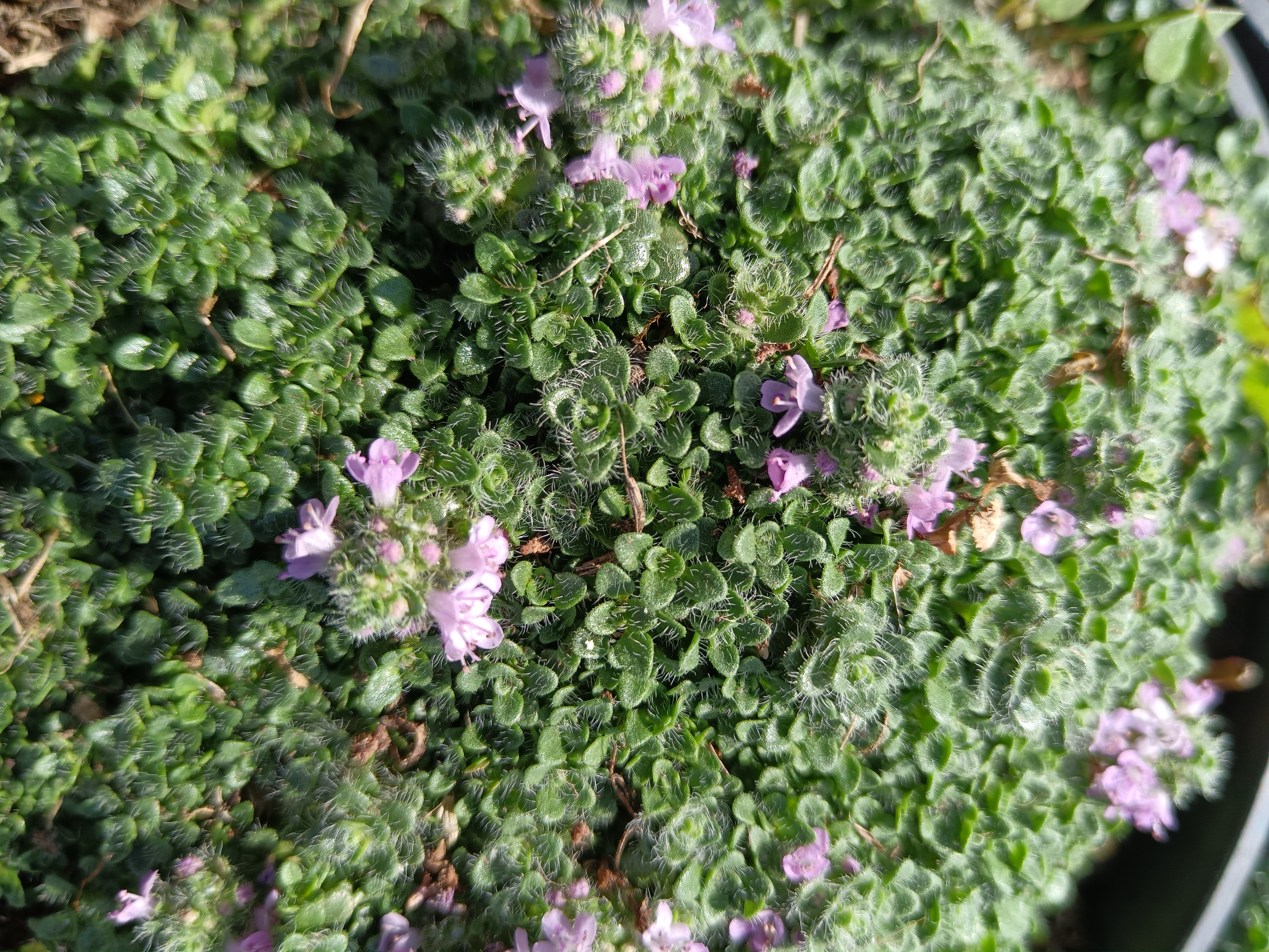 (Thymus praecox Pink Chintz) 5 cm magasra növő, elfekvő szárú, aromás kúszónövény, rózsaszín virágait nyár elején bontja. Gyeppótlásra is alkalmas. Nagyon gyorsan terjed. Napon és félárnyékban is szépen fejlődik. Közepes vízigényű.
