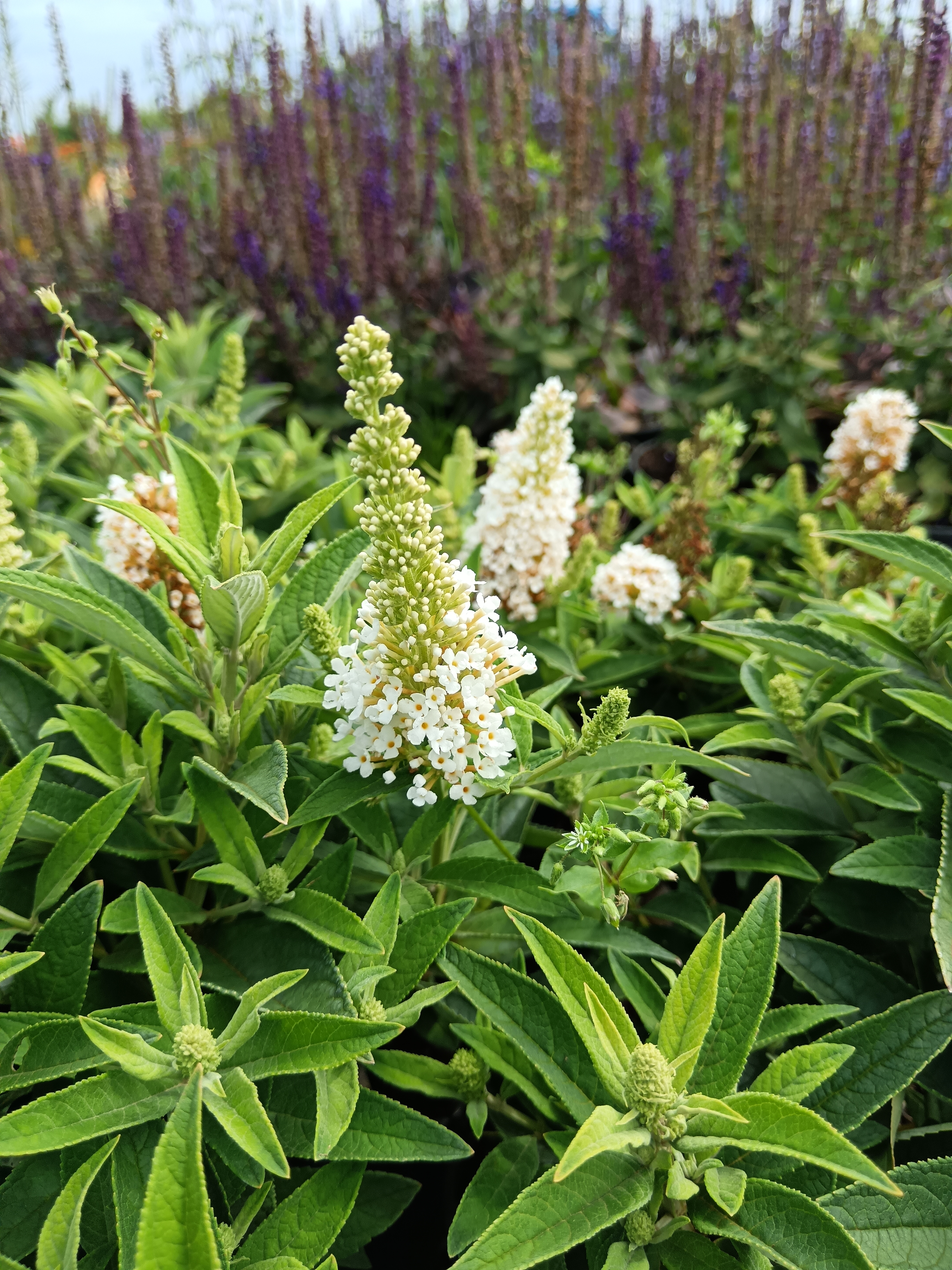 (Buddleia Marbled White) 1,5 m magas nyári orgona, júliustól októberig dúsan virágzik. Napos helyre ültessük, szárazságtűrő.