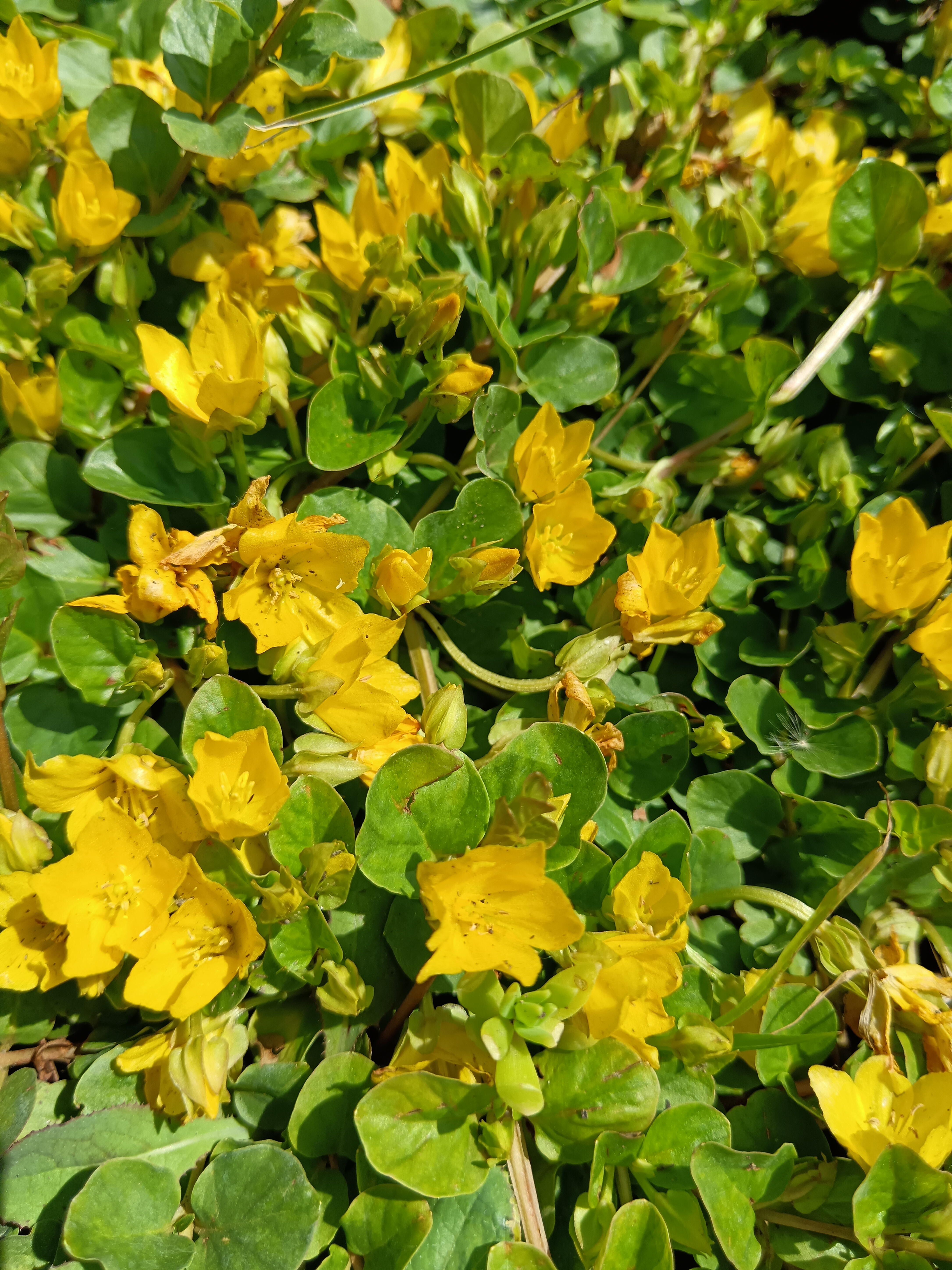(Lysimachia nummullaria) Június-augusztusban nyílnak sárga virágai. Gyeppótló, elfekvő szárú futónövény. Nagyon gyorsan terjed. Napon és félárnyékban is szépen fejlődik. Közepes vízigényű.