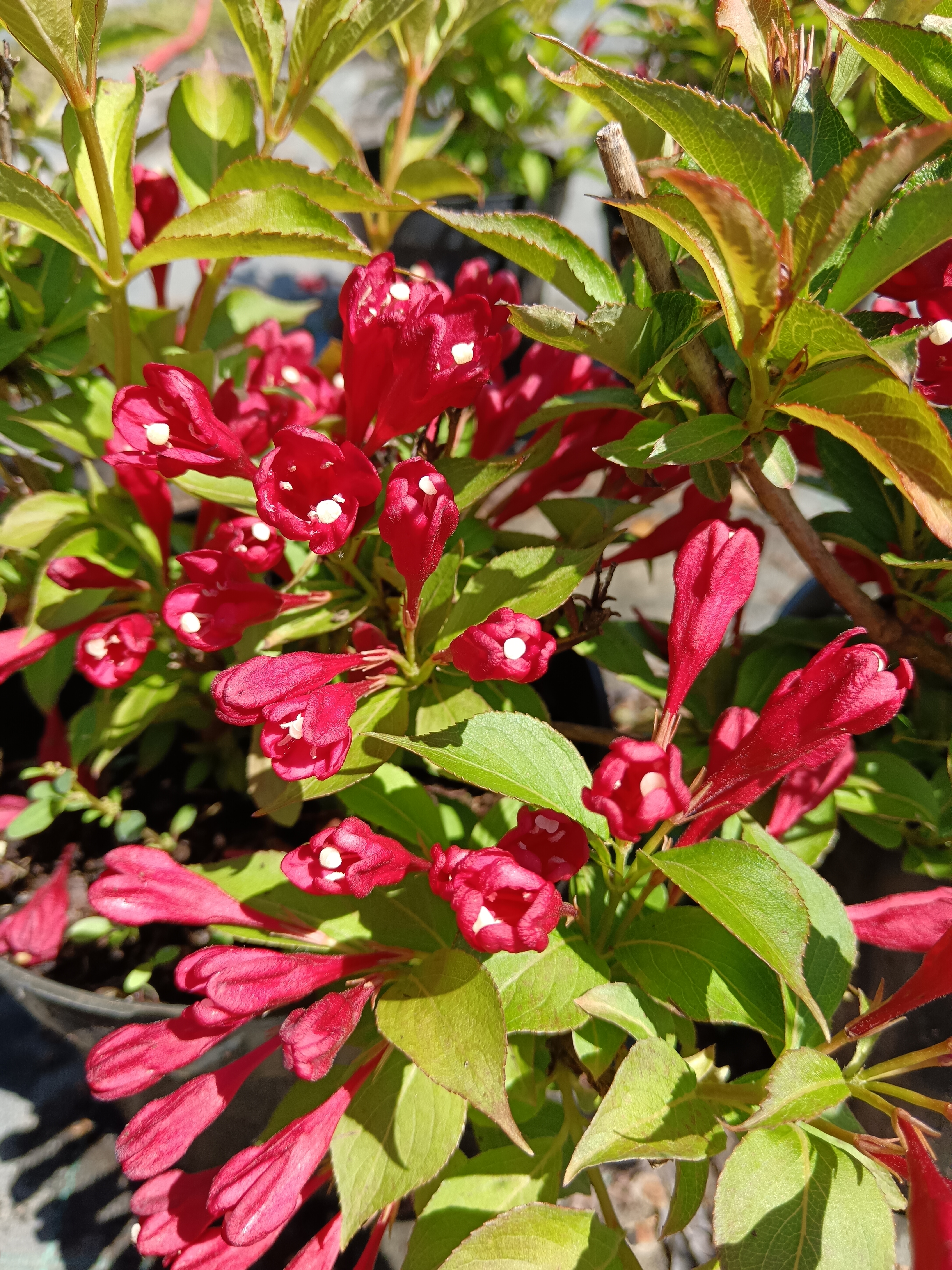 (Weigela florida Eva Rathke) 2-3m magas cserje, május-júniusban hozza piros, tölcséres virágait.Napos helyen érzi jól magát. Közepes vízigényű. Nyár végén gyakori az utóvirágzása. Az idősebb töveket könnyen megfiatalíthatjuk egy erősebb visszametszéssel.