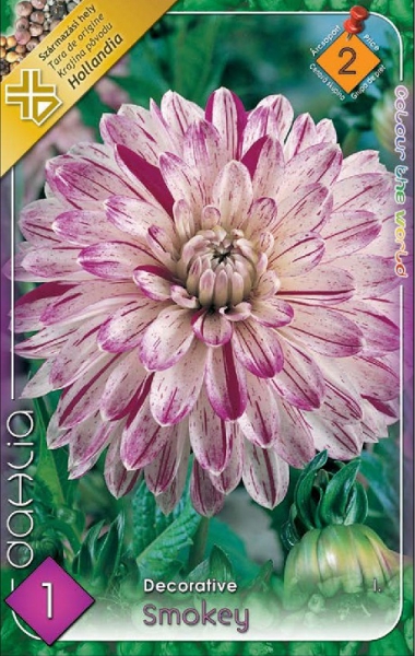 100 cm magas fajta, virága fehér alapon lila csíkos.