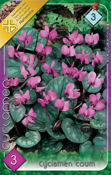 10 cm magas erdei ciklámen, lila virágai februártól nyílnak. Félárnyékos helyet humuszos talajt igényel. Hagyjuk sokáig egy helyen, így bőségesen virágzik.