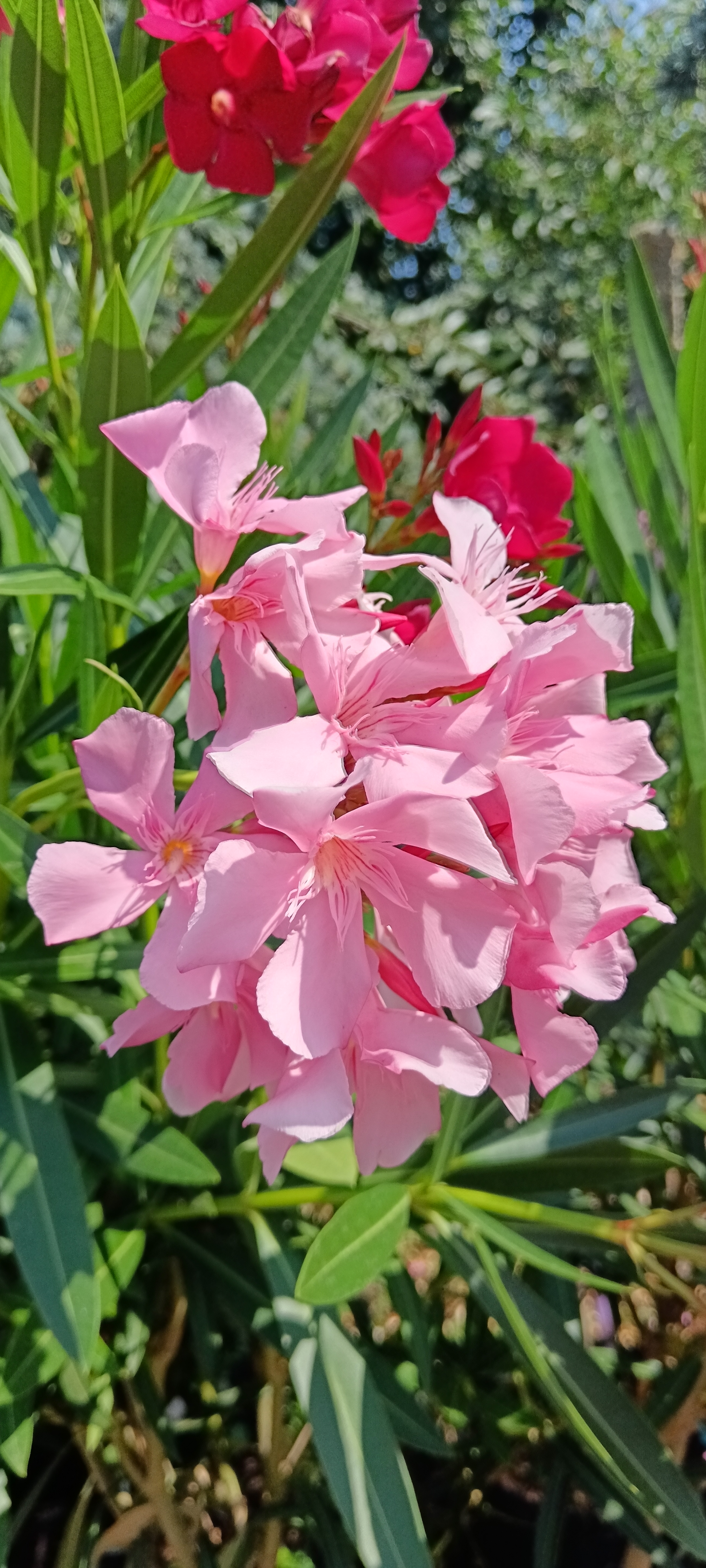 (Nerium oleander Pink Petite) Koronás fácskává vagy többágas bokorrá nevelhető növény. Egész nyáron bontja illatos halvány rózsaszín virágait. Elvirágzás után a virágkocsányokat ne vágjuk le, mert így továbbfejlődik és újra virágzik.