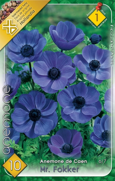 (Anemone de Caen Mr. Fokker) 30 cm magas, lila virágú hagymás évelő. Márciustól áprilisig virágzik. Lombhullató fák alá, bokrok környékére vagy sziklakertbe ültessük.
