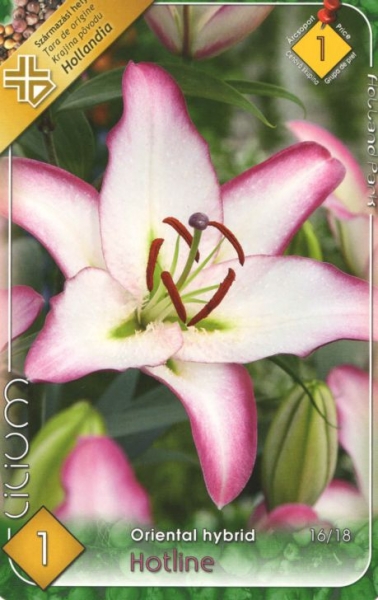 60 cm magas liliom, illatos, trombita alakú virágai júliustól nyílnak. Napos helyre, jó vízáteresztő talajba ültessük.